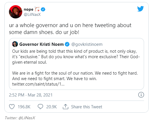 Inform yourself, check out the piece in VOX by Aja Romano: Lil Nas X’s evil gay Satanic agenda, explained - I think she does a masterful job of getting to the root of why this is even a thing.